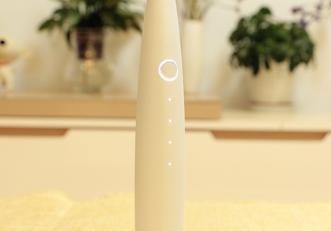 圆形按键周边是白色呼吸式指示灯,我们可以通过指示灯,获知牙刷的开机、充电、电量状态。