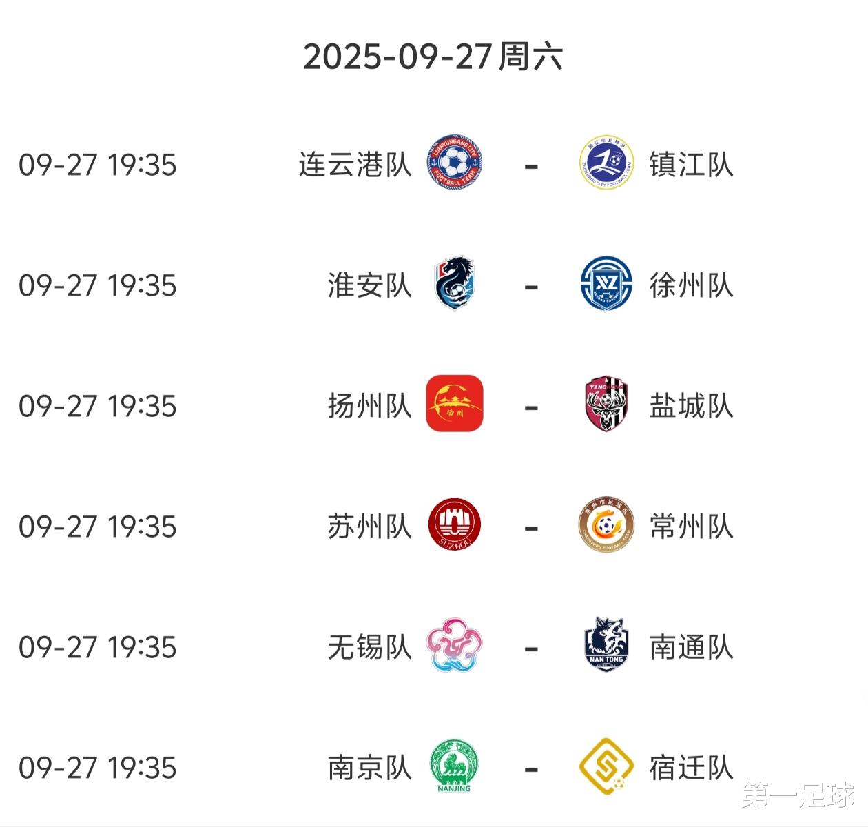 江苏共13个地级市,所以苏超共有13队,每队与另外12队交战,6主6客,每轮比赛将有一支球队轮空。今晚19点35分,苏超最后一轮同一时间开打(国际惯例,一般联赛最后两轮都是同一时间开打,防止默契球产生)。