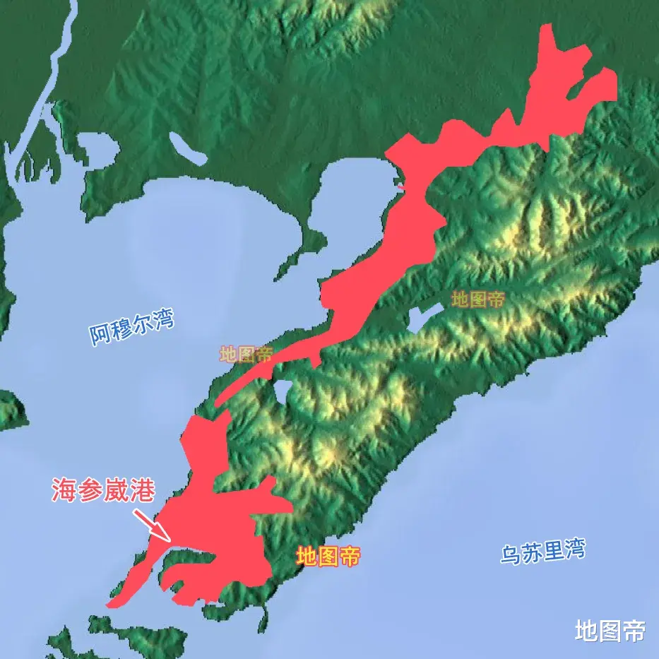 阿穆尔半岛三面临海,西边是阿穆尔湾,东边是乌苏里湾,南边是彼得大帝湾,陆地上低山丘陵环绕,地势险要。