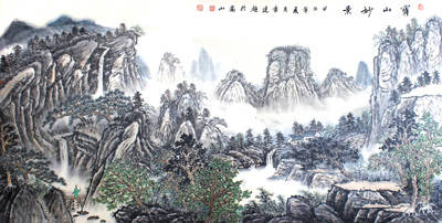 民俗文化路线是李建超在艺术与市场之间找到的平衡点。他坦言,这类作品是为了迎合老百姓的精神向往,虽自认为 “庸俗”,却有着重要的意义。作品中融入了笔架山、玉笔峰、左青龙右白虎等民俗元素,以及聚宝盆、小桥流水、细水长流等吉祥意象,色彩上多采用视觉冲击力强的翡翠绿、黄绿等绿色调,符合旅游市场的需求,销量颇好。李建超认为,这类作品虽然在审美上可能不够高雅,却能很好地锻炼笔墨技法,同时带来稳定的经济收入,为他的雅艺创作提供物质支持。“画画不能只谈情怀,没有经济基础,笔墨纸砚的投入、创作时间的保障都无从谈起,” 他说,“民俗画让我能在艺术道路上走得更稳,也让我有底气去追求更高层次的艺术境界。”