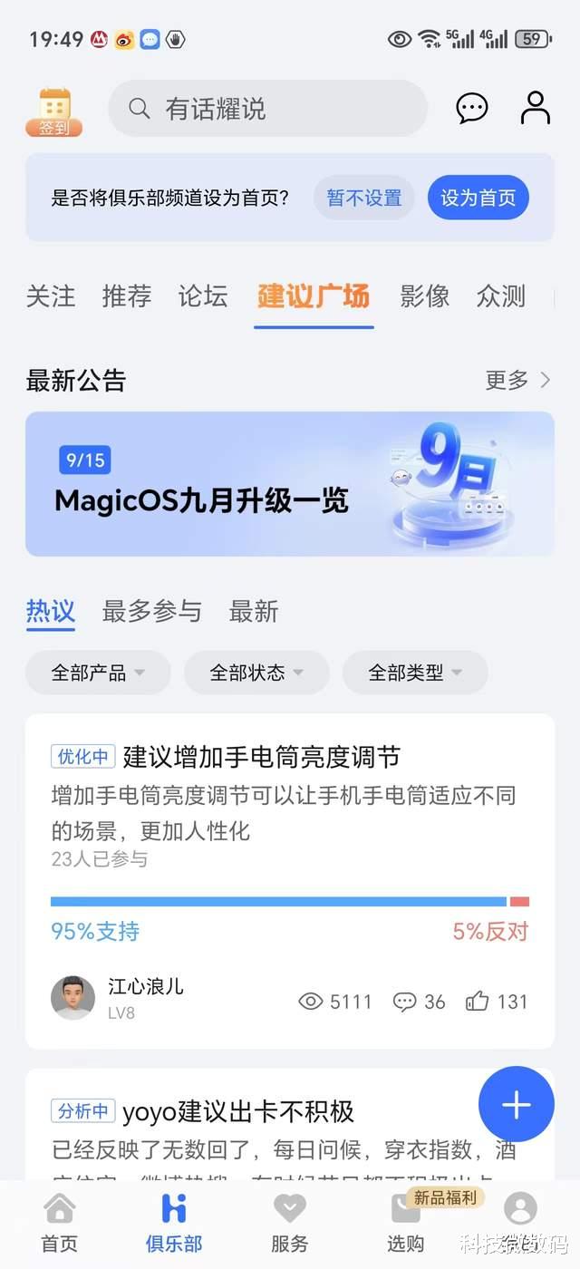 而且,为了搜集大家的意见和建议,荣耀专门在荣耀俱乐部开设了建议广场,大家对产品以及系统等有好的建议,可以进行发帖,官方就结合用户的需求,适时进行更新完善,在这方面荣耀还是非常听劝的。