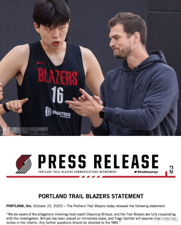 北京时间 10 月 24 日,波特兰开拓者队突然发布官方声明,宣布主教练昌西 - 比卢普斯因涉及非法扑克游戏被捕,已被球队立即停职。这一消息震惊了整个 NBA 联盟,也让刚刚开启新赛季的开拓者队陷入了前所未有的困境。与此同时,助理教练蒂亚戈 - 斯普利特将暂时接任主教练职务,这一变动对于中国球员杨瀚森来说,可能是一个意想不到的利好消息。