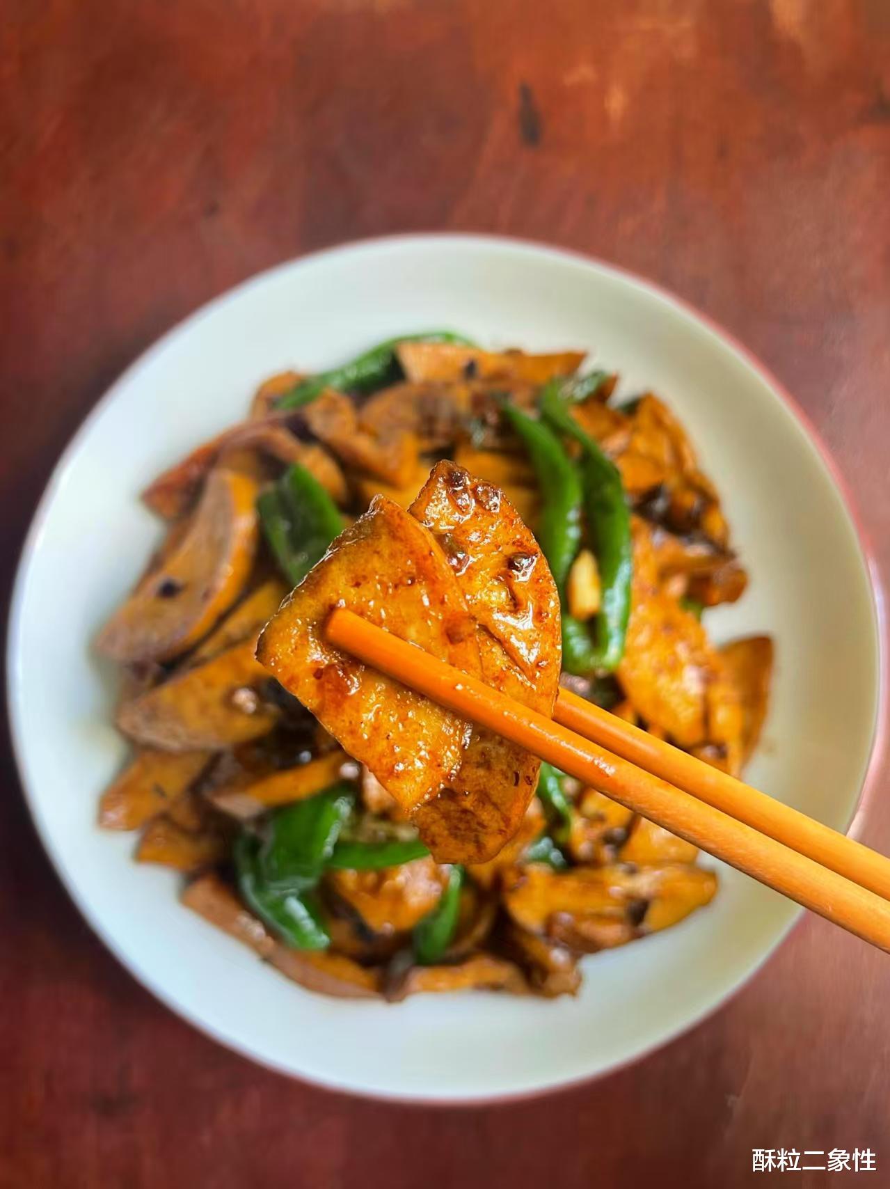 出锅前撒一把新鲜蒜苗,绿得跳脱,像给这盘黑金小弟戴上翡翠项链。趁热夹一块,外壳带着轻微焦脆,牙齿突破后,内里“噗”地释放豆香,辣椒的冲、豆豉的醇、蒜的野,一起涌上舌尖,辣得刚好,鲜得上头。我原地旋转,把“素”字踢到九霄云外——这分明是植物界派来的卧底,专门来收买下酒灵魂的。
