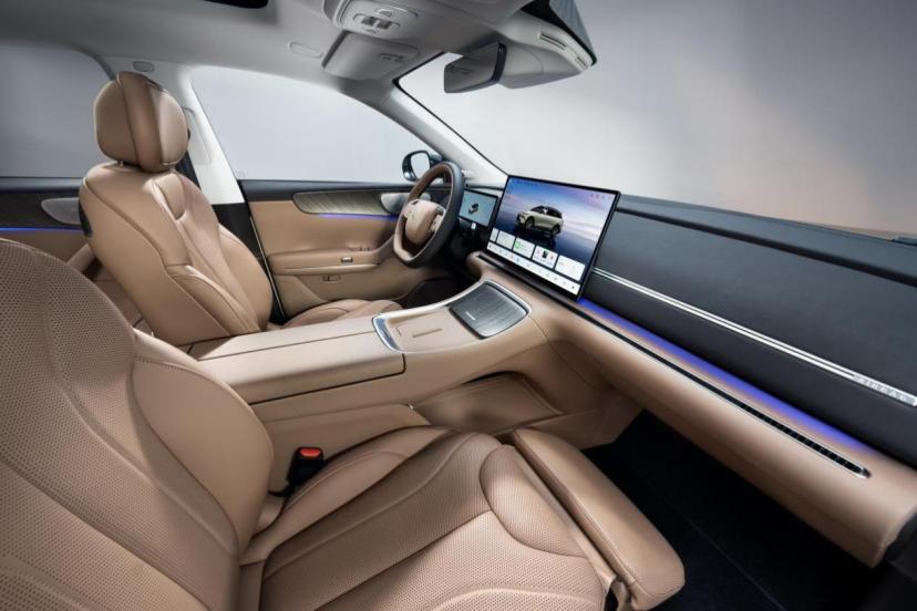 买的纯电顶配车型,内饰软包多,大部分摸得到的地方都是软包或者皮的,座椅是Nappa真皮云感座椅,前排有加热通风,有8点SPA按摩功能,副驾电动腿托有四向调节,这点老婆很满意。