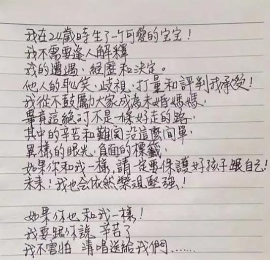 然而,近日,在一档综艺节目中,主持人利菁无意间提及了谢金燕的未婚生子经历,并爆料了孩子生父的名字。这一突如其来的爆料,让谢金燕再次陷入了舆论的漩涡之中。这一次,她选择了正面回应,不仅发文安慰了利菁,还晒出了自己创作的歌曲《我不害怕》和手写信,表达了自己对于这一事件的看法和态度。
