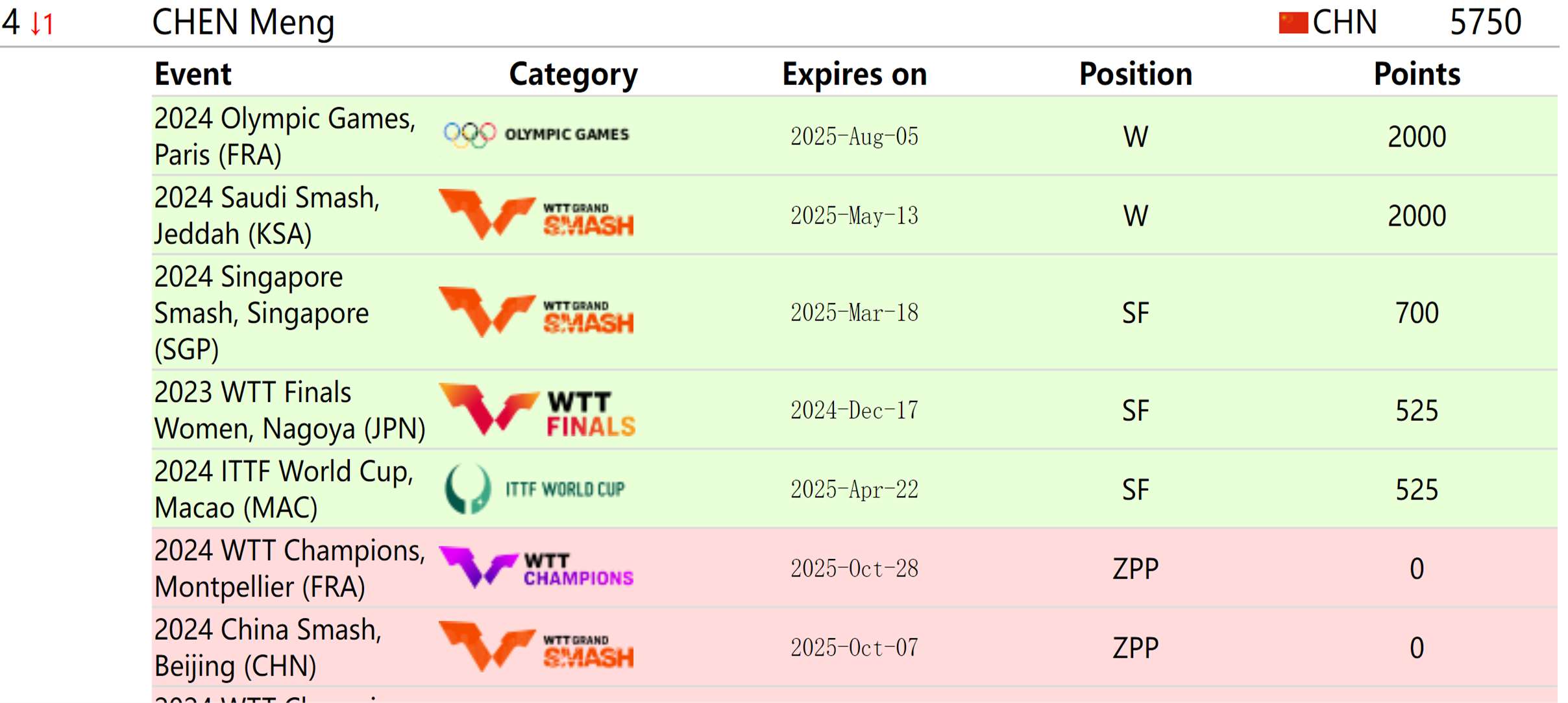 值得一提的是,日本选手大藤沙月在蒙彼利埃冠军赛中夺得女单冠军,获得了1000分的积分,她的总积分因此达到了2238分,排名也提升了四位来到第11位。她领先第12位的平野美宇超过600分,与第10名的申裕斌也只差72分。只要大藤沙月在本周的常规挑战赛马斯喀特站晋级到四强,那下周她就将跻身世界前十。