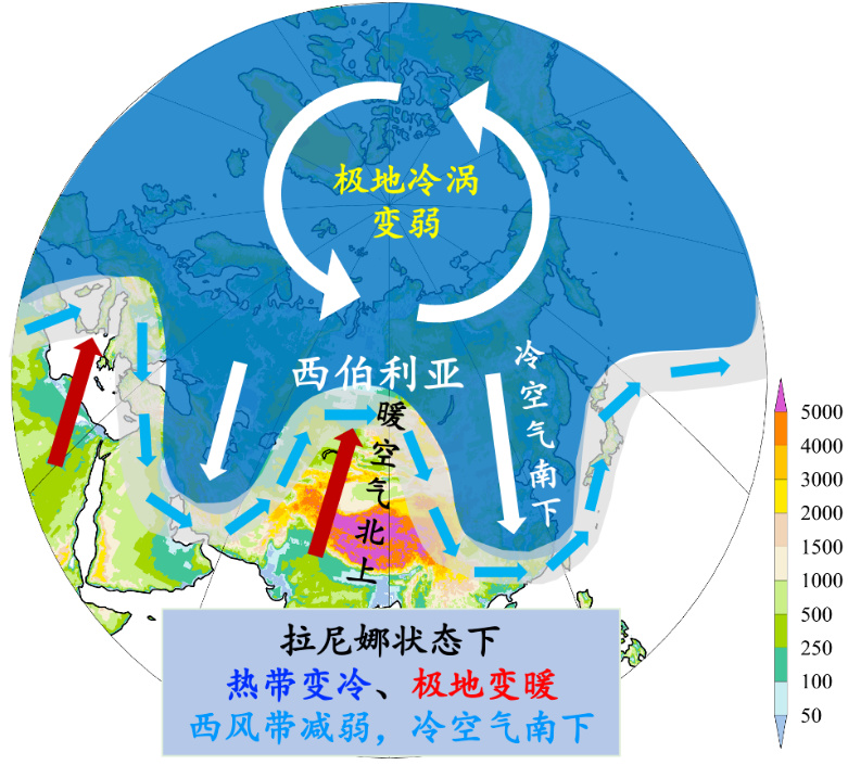 一般发生拉尼娜事件的冬季(当年12月至次年2月),我国气温偏低的概率相对更高,所以,它是影响我国冬季最为关键的因素。