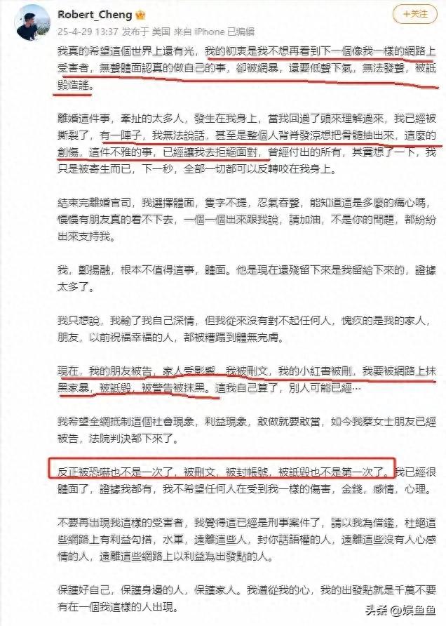 这个“前夫哥”Robert cheng出来就摔大料:马筱梅婚内出轨、遭威胁、被网暴,还晒出了聊天记录和法院文书,一时间被赞“好女人”、“好儿媳”的马筱梅被推上了风口浪尖!汪家可真是自带“热搜体质”想消停都消停不了啊!