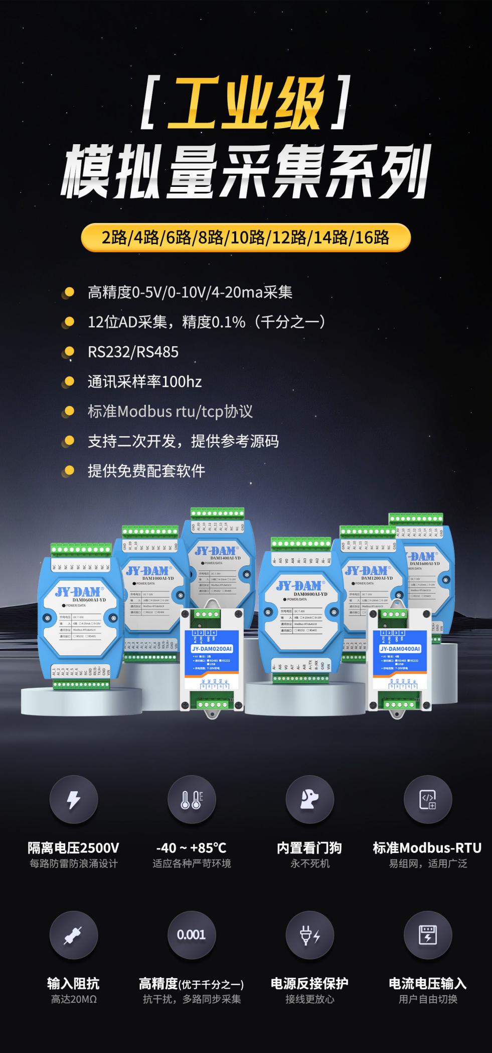 工业级模拟量采集设备系列,专为严苛工业场景打造,集高精度采集、强抗干扰、宽温宽压与完善软件生态于一体,全面满足工业现场稳定可靠的数据采集需求。