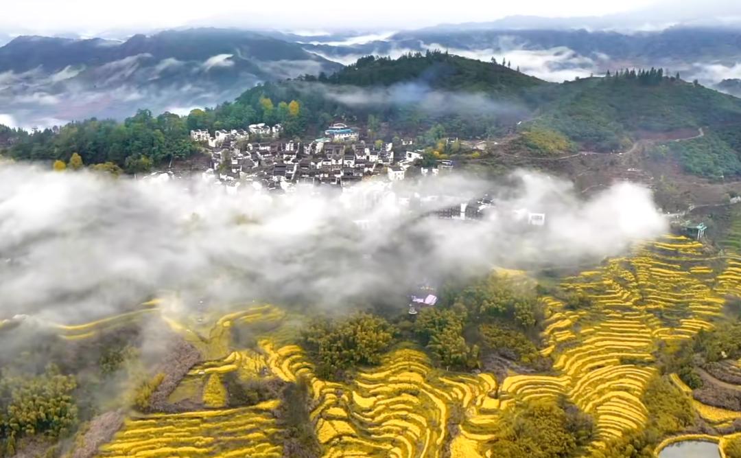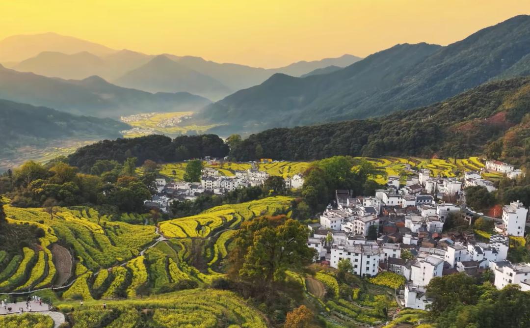 婺源是梯次开放的低海拔村落,比如李坑、思溪延村,3月10号到25号是最全的开花期,白墙黛瓦配金黄花海,氛围感直接拉满。