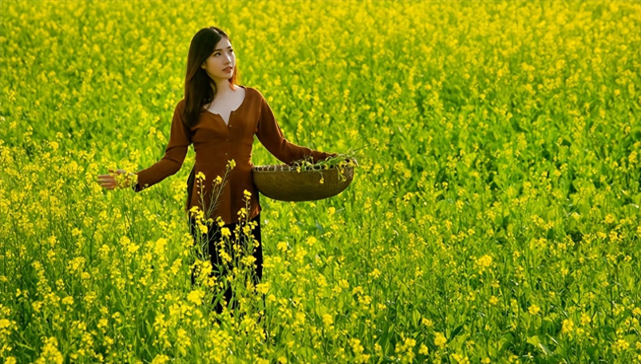油菜花拍照的衣服,建议以白色亮色为主,会更加出片。