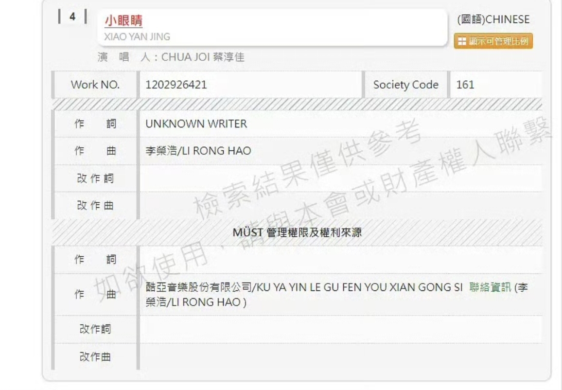 结果话音未落,就有眼尖的网友扒出:李荣浩回应《小眼睛》抄袭平井坚《Signal》时说自己"20年前扒带练习,误打包发给版权公司",但中华音乐著作权协会的登记信息显示,《小眼睛》的版权登记方正是李荣浩自己的公司!