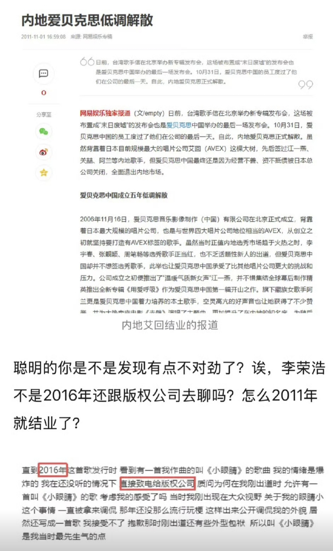 更绝的是,网友发现李荣浩的版权公司"酷亚音乐"成立于2013年,而《小眼睛》2016年发行——时间线一对,这"误发"的说法怎么听怎么像"薛定谔的误发":发之前不知道自己发了,发之后也不知道自己发了,直到被网友扒出来才知道自己发了?