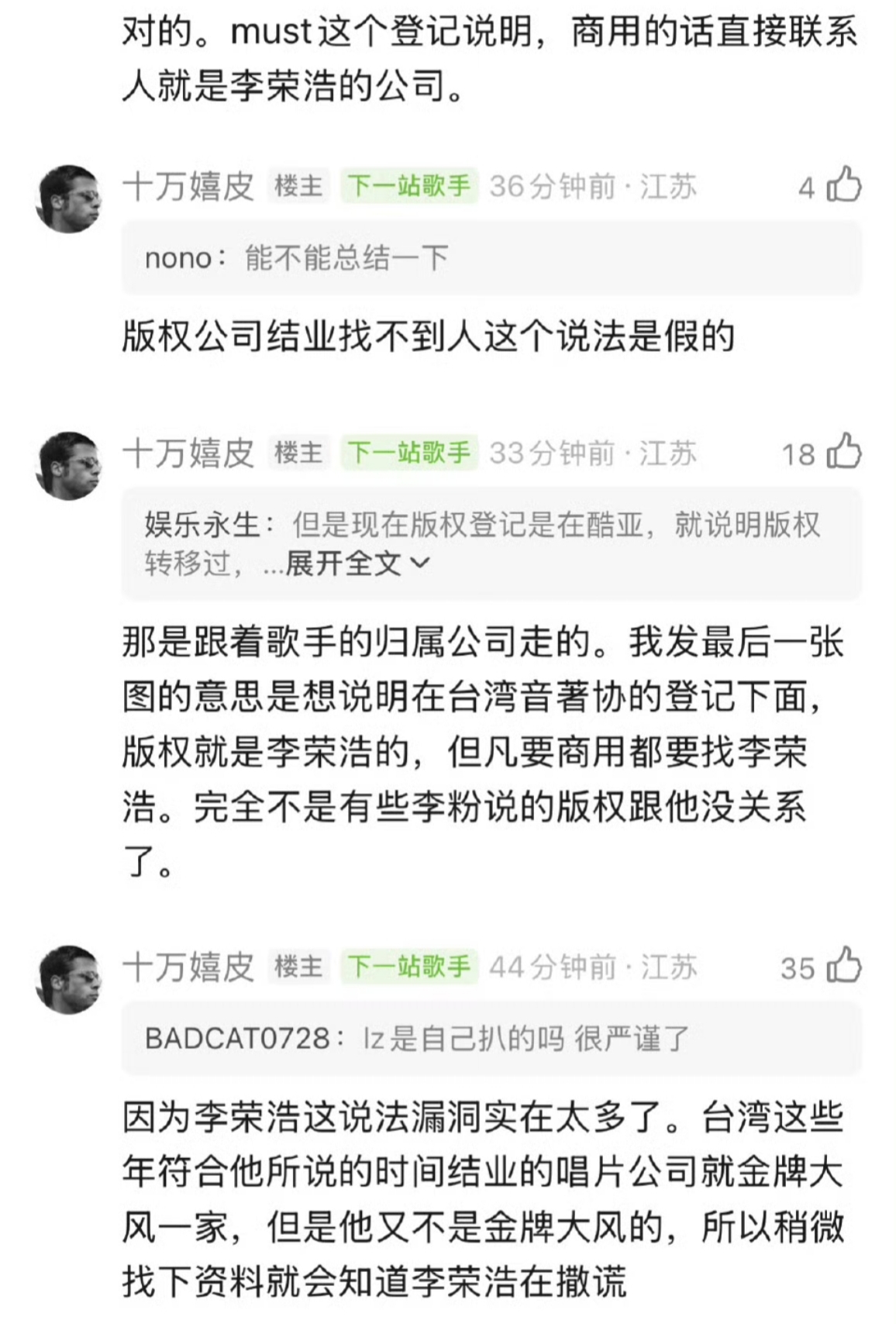 现在事件还在发酵,李荣浩方面尚未对"登记在自己公司"这一实锤做出回应。网友已经搬好小板凳坐等后续:"看看这次浩哥怎么'中译中'自己的声明"。