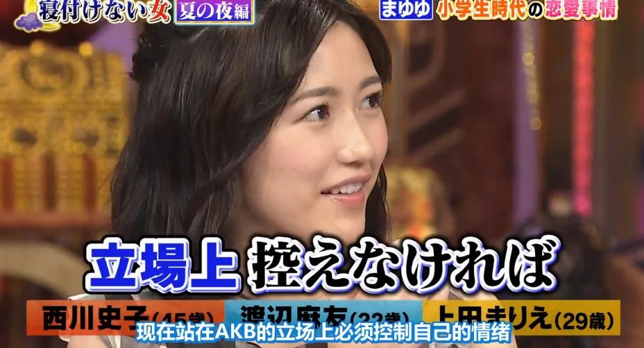 鼎盛时期的AKB48人气成员是日本八卦杂志每天跟拍的重点对象,而渡边麻友被称为“文春都拿她没办法的人”,始终没有被拍到绯闻。