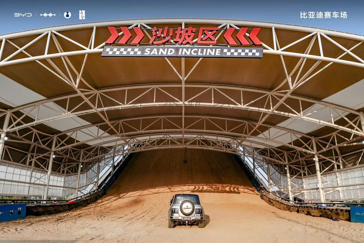 不同于传统赛车场的单一赛道设计,比亚迪将全国特色地形 “搬进” 赛车场,打造浮水航行、沙漠冲坡等特色地形,让用户无需长途跋涉,就能一站式打卡极致场景,全速好玩尽在比亚迪赛车场。