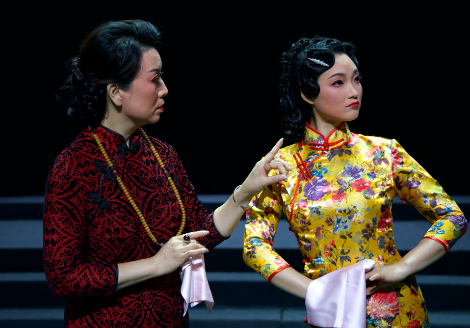 本土演员以扎实功底精准塑造人物,饰演杨森的演员运用“须生”身段,通过捋须、抖袖外化内心挣扎;地下党员角色的“矮子步”表演,保留川剧丑角诙谐特质,又赋予革命者机敏果敢内涵。唱腔处理注重情感表达,“延安求学”一场合唱融合川剧高腔与民歌元素,既保“穿云裂石”韵味,又传递真挚理想情怀。