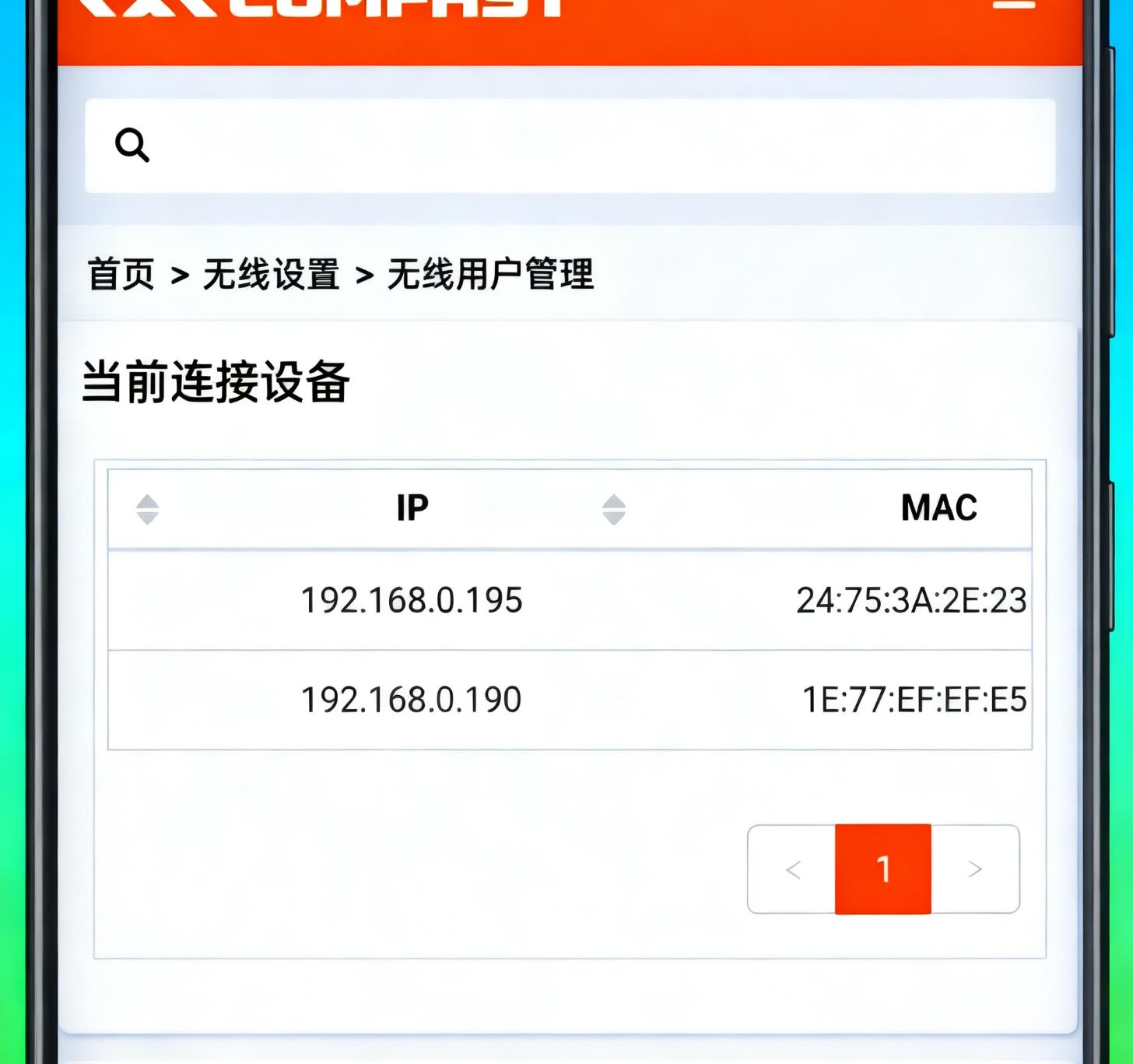 在管理界面内找到关于“设备管理”或“已连接设备”的选项,点击进入后,就能看见所有连接WiFi的设备,可以清晰了解到设备的名称、型号以及IP地址,MAC地址,以便排查。