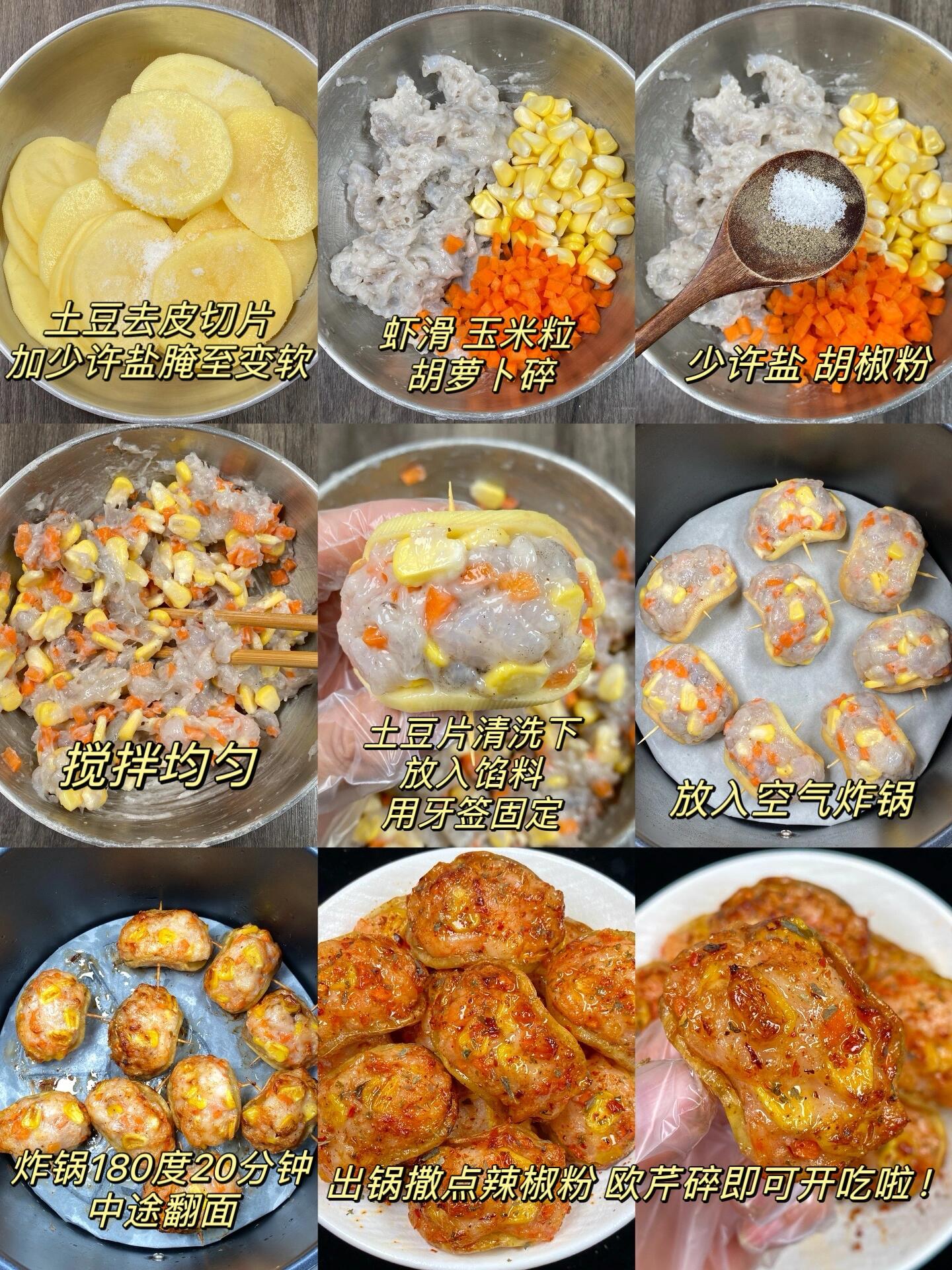 3. 防止散开:淀粉抹层不能省,它是土豆和虾滑的“粘合剂”。