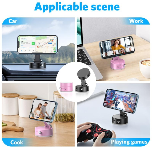 具体来说,这款手机支架来自跨境店铺CLOUDYUNNY,产品整体设计也是比较新颖,其底座采用真空吸附的挂壁方式,只要是光滑的平面,滑动阀门就能抽气和排气。即使周围没有光滑平面实现真空吸附,消费者也能利用该支架的磁吸功能,将手机固定到适合的位置。