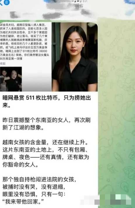 但离谱的事儿还在后头!暗网上的一群大佬跟疯了似的,抢着要把这“大嫂”捞出来!报价从20万美元一路飙升到600万美刀,现在直接冲到了511枚比特币,换算成人民币都快3000万了!我刷到暗网截图时都看傻了,有人留言说“这年头还讲‘义’字的女人,比熊猫还金贵”,还有知情人爆料,已经有雇佣兵悄悄潜入柬埔寨,带着重型武器,就等着找机会搞“狸猫换太子”!