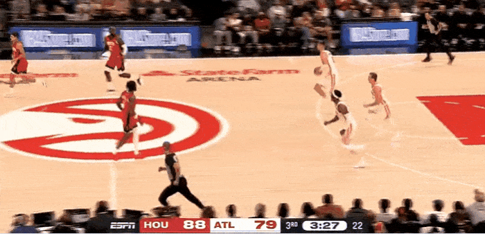 NBA季前赛,火箭对阵老鹰的比赛正在进行中。第三节比赛,特雷-杨与铂金默契十足,上演精彩空中连线暴扣终结。