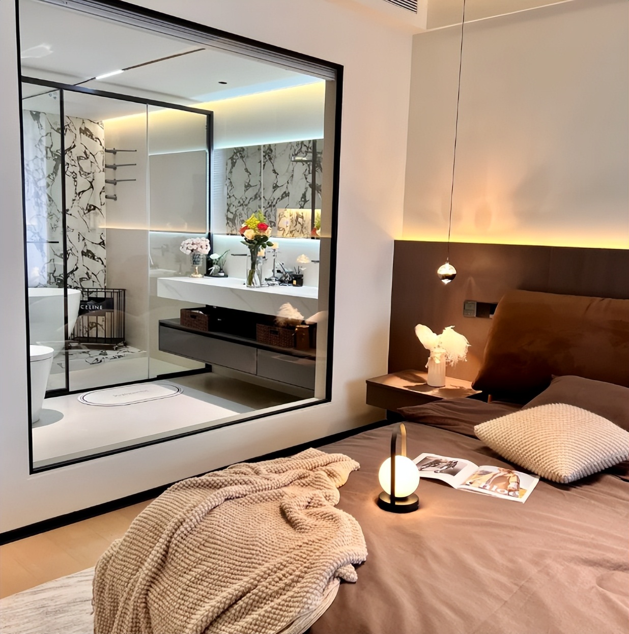 在卧室中的卫生间你可以根据自己的心情去设计和摆放物品,客人是不会去用卧室里面的卫生间。
