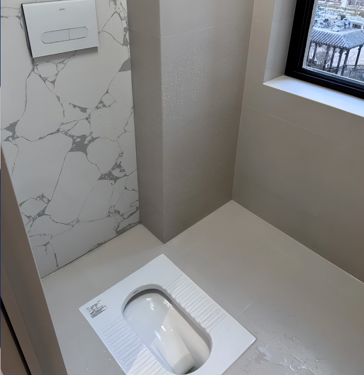 外面的卫生间就当做给客人去用,你可以去打造一个蹲便器,能节省不少钱,打扫也方便,比马桶会卫生。