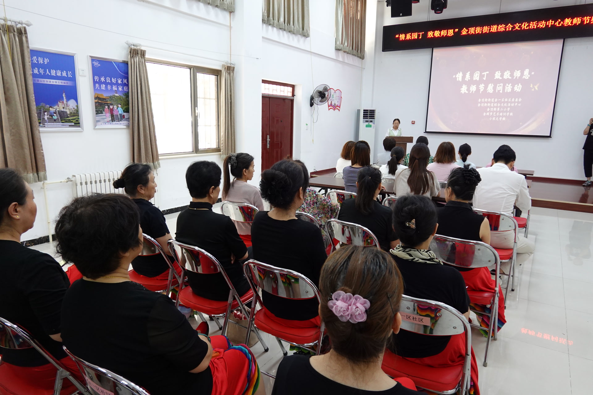 活动现场,街道综合文化活动中心代表首先致辞,向一线教师致以节日问候,感谢他们为街道青少年教育事业的辛勤付出,并介绍了活动中心的公益讲座、兴趣课程等文化资源,表达了深化校地共建、共享优质资源的意愿。金一区社区代表也表示,将全力做好家校联动服务,为教师教学和学生成长提供支持。