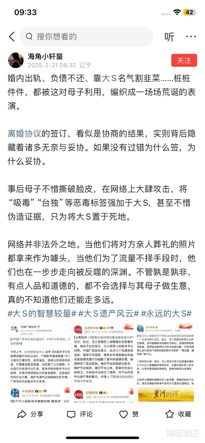 现在汪小菲是在维护前妻大S的权益……有些人是非不分,还在骂汪小菲母子?