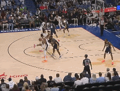 今年10月队内训练赛,文班一个侧身对抗,就将替补中锋科内特顶得连连倒退;首场常规赛,对位老牌状元浓眉,竟然还能碾着往内线推;再到第二场硬顶锡安的蛮牛冲撞,文班亚马的力量进化,确实让人眼前一亮。
