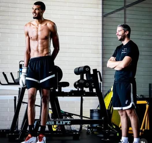 这也是源自文班不走寻常路的特训,第一个休赛期,他竟然请了风骚的“运球大师”贾马尔·克劳福德来指导自己。对此马刺前主帅波波维奇完全支持,甚至上赛季他中风住院期间,还叮嘱球队要多让文班面筐进攻,而不是低位背打。