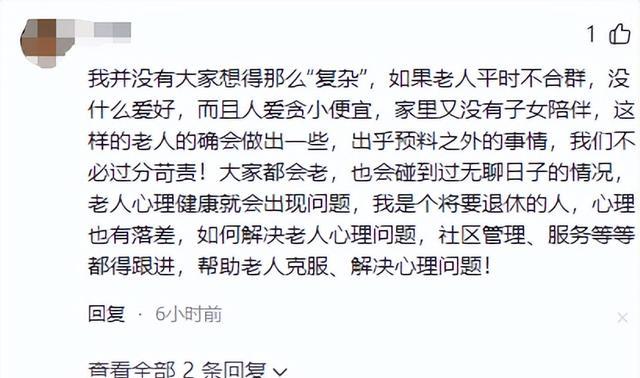 跟有人猜测老人年轻时的时候就有三只手的习惯,只是以前没有被人抓到,如今老了还想顺点东西,最后被监控发现。