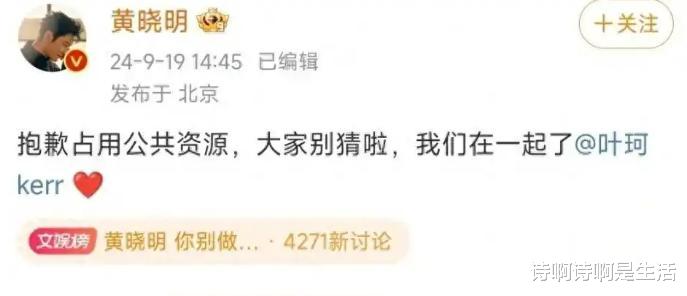 发生在他身上的事情,也不禁让人想起了当年的黄晓明。因为黄晓明当时在官宣恋情的时候,也是没有艾特对方。