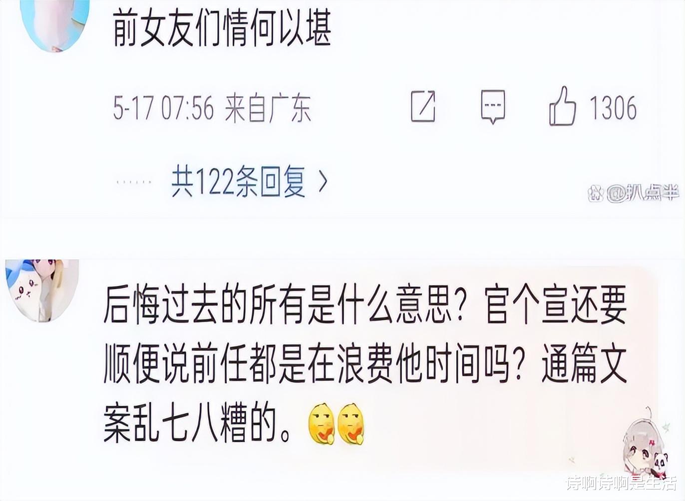 他发的这一条动态,虽说没有指名道姓是在说谁,但也有很多人觉得这种内涵前任的方式实在是太不男人了。