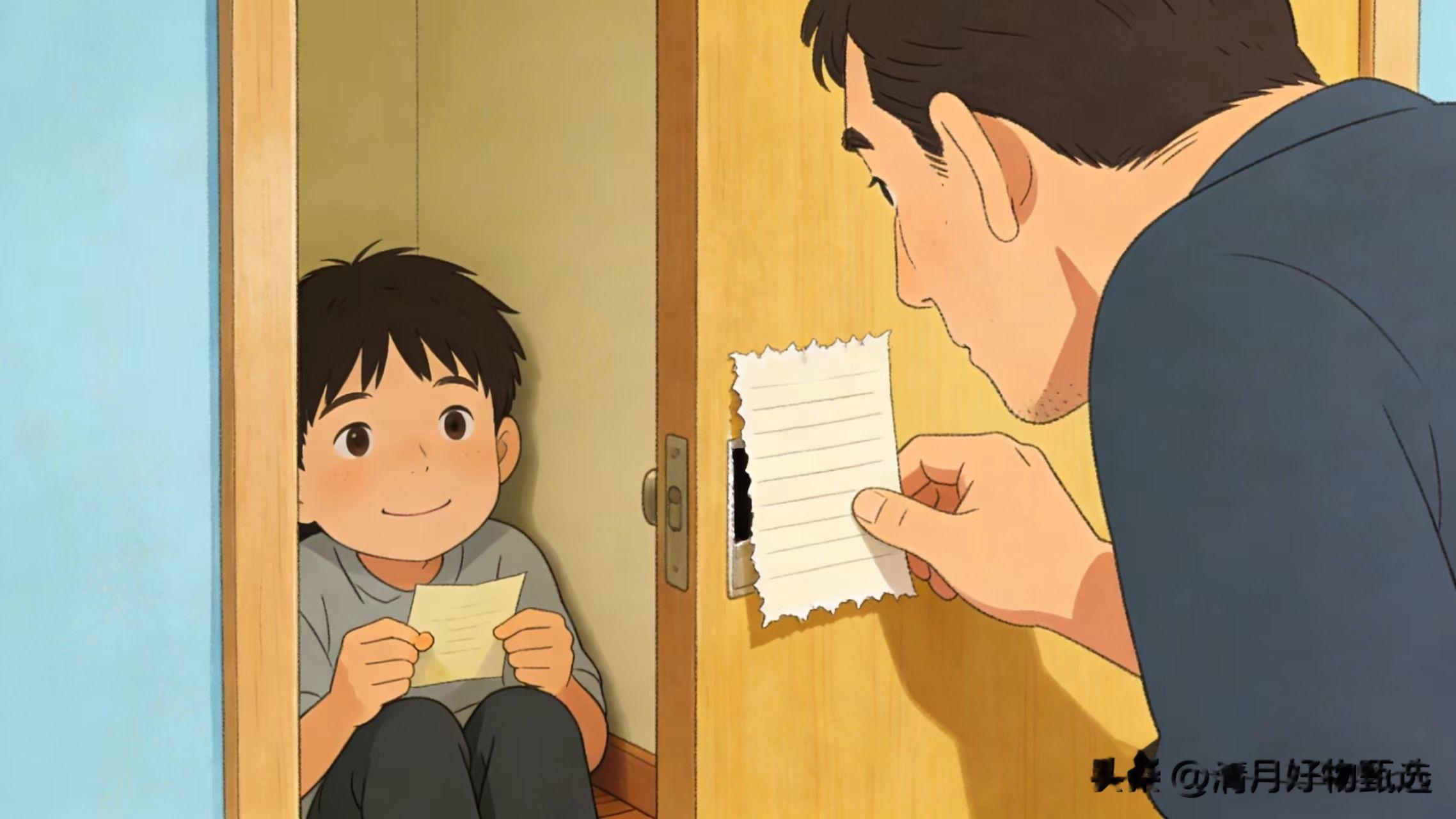 一位爸爸的做法很有意思。儿子房门贴了“闲人免进”,他就在门缝下塞纸条。第一次写的是:“晚饭有你爱吃的糖醋排骨,七点开饭。”儿子没回。第二天他又写:“今天下雨,伞在门口挂钩上。”儿子回了一个字:“哦。”