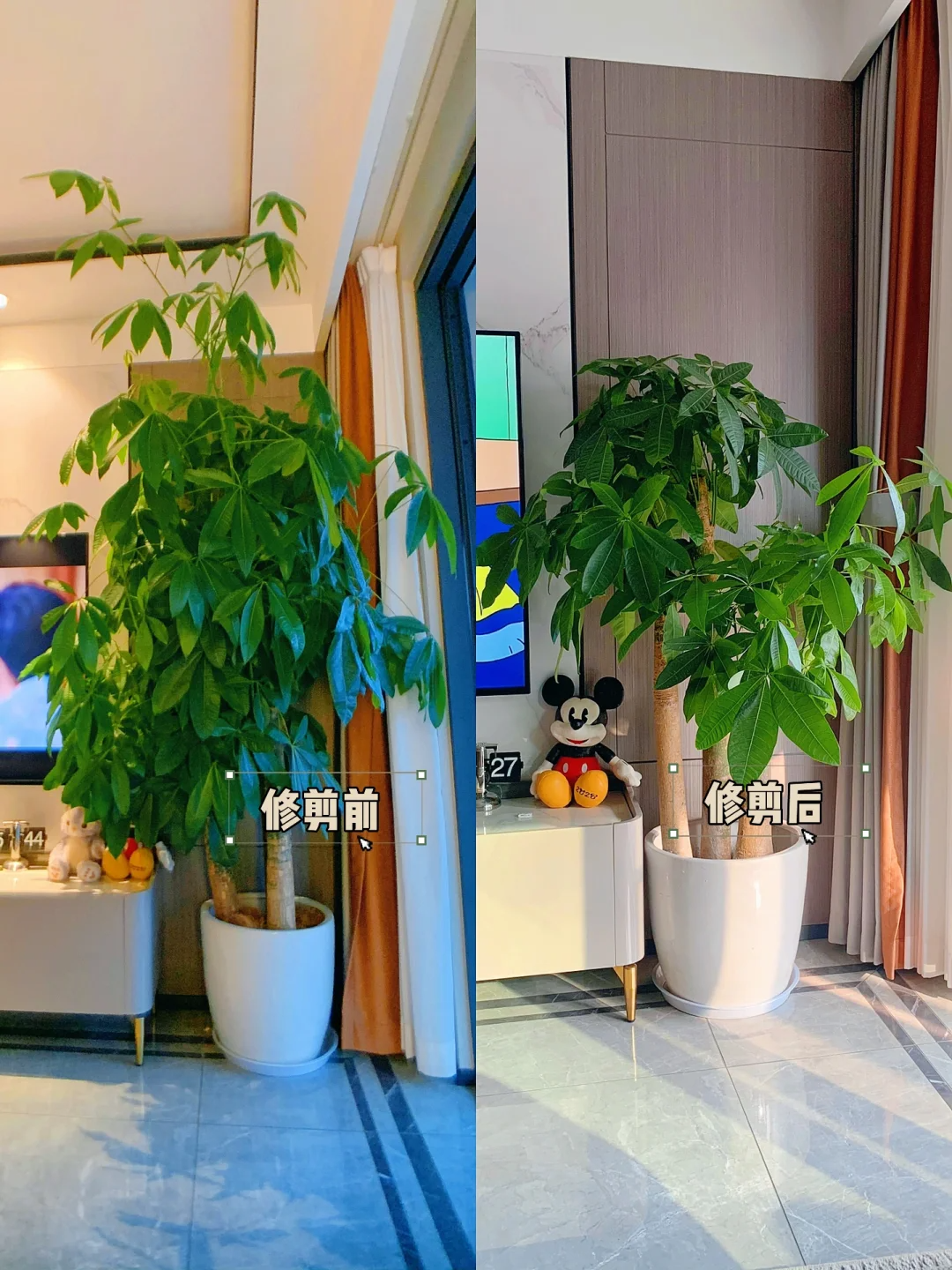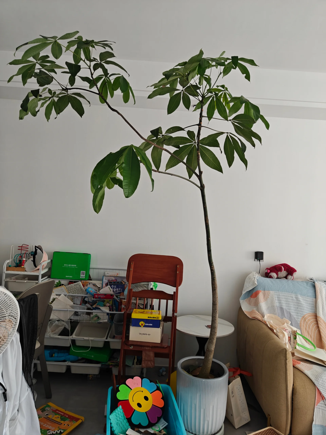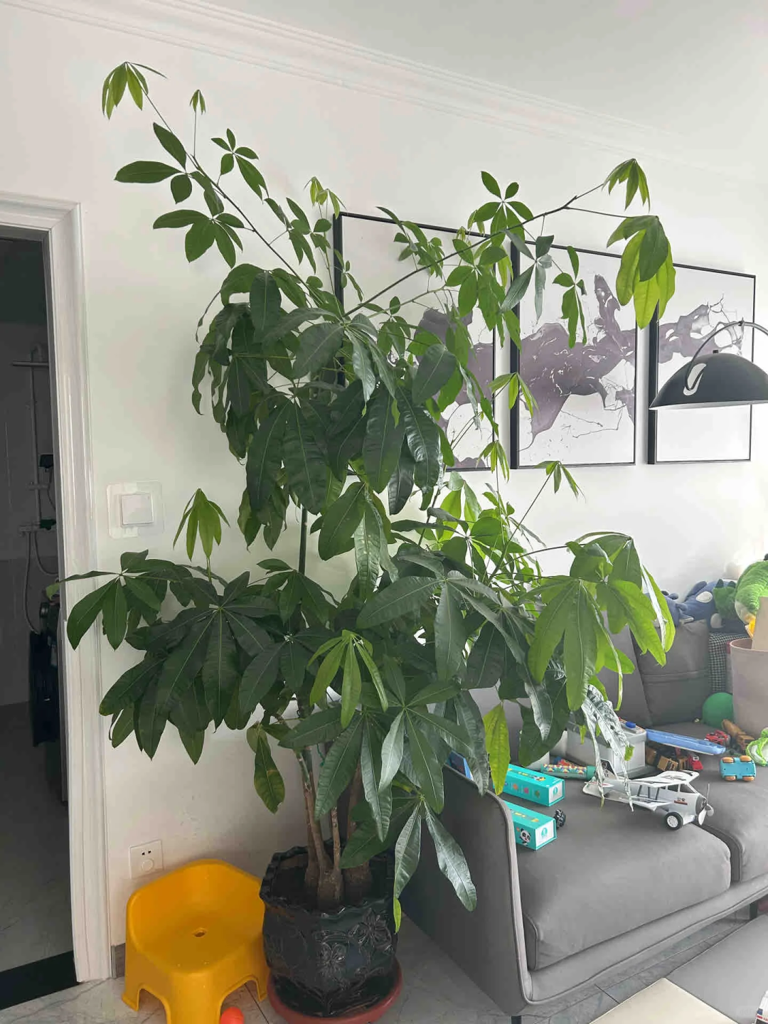 放任不管,发财树可以长成参天大树,但室内的高度有限,可能戳破屋顶,而且长得太高了,难免给人一种压抑的感觉。