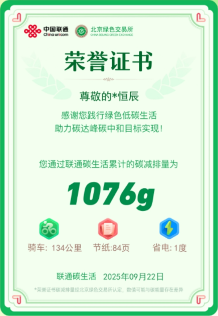 在个人生活降碳方面,中国联通更是率先推出通信行业碳普惠应用“联通碳生活”,其碳减排量计算模型通过国家级认证,累计获得国内外相关荣誉16项,填补了行业个人碳账户空白,赋能亿级用户绿色生活方式转型。