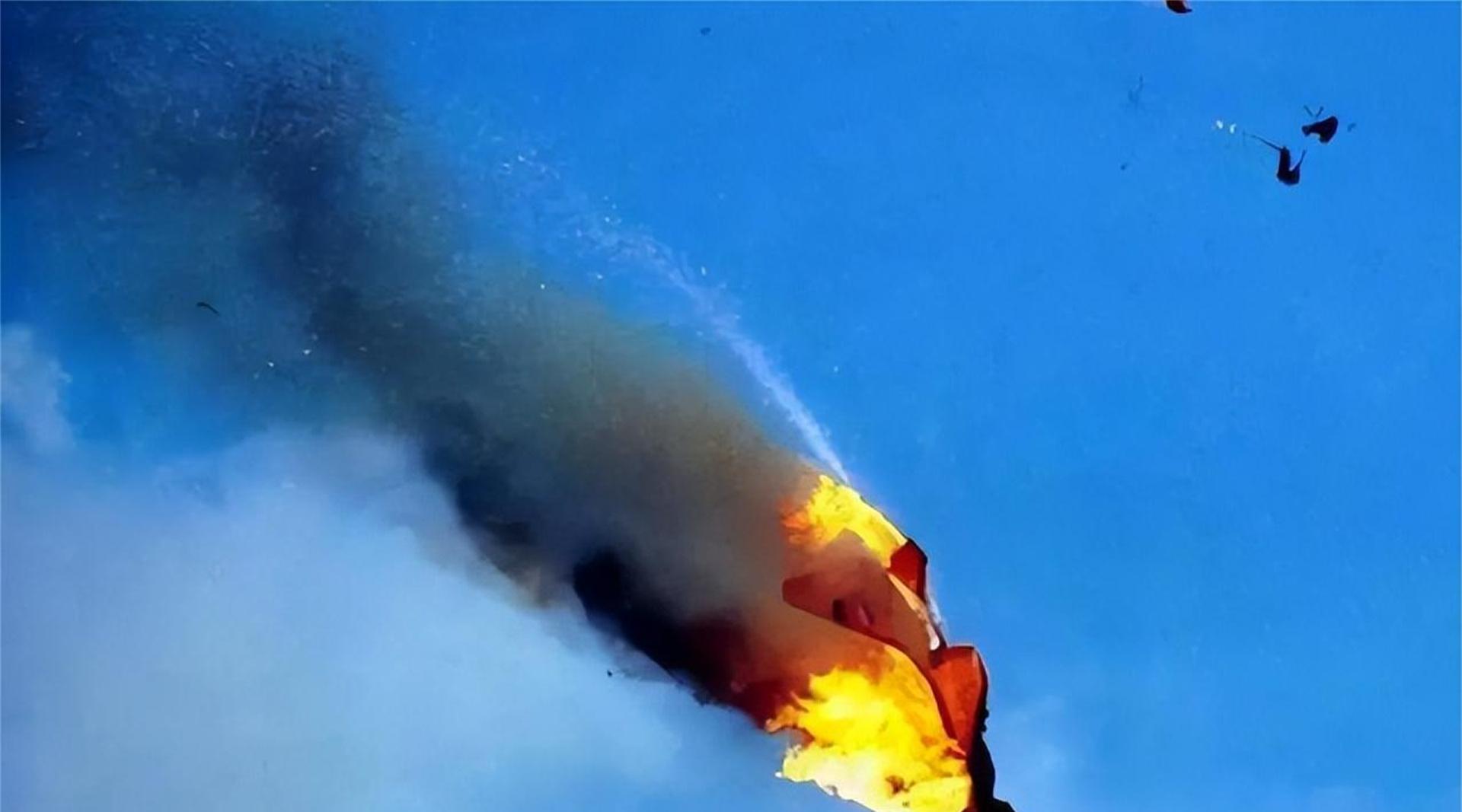 王伟的战斗机尾翼直接撞得粉碎,后方燃起很大的火球。