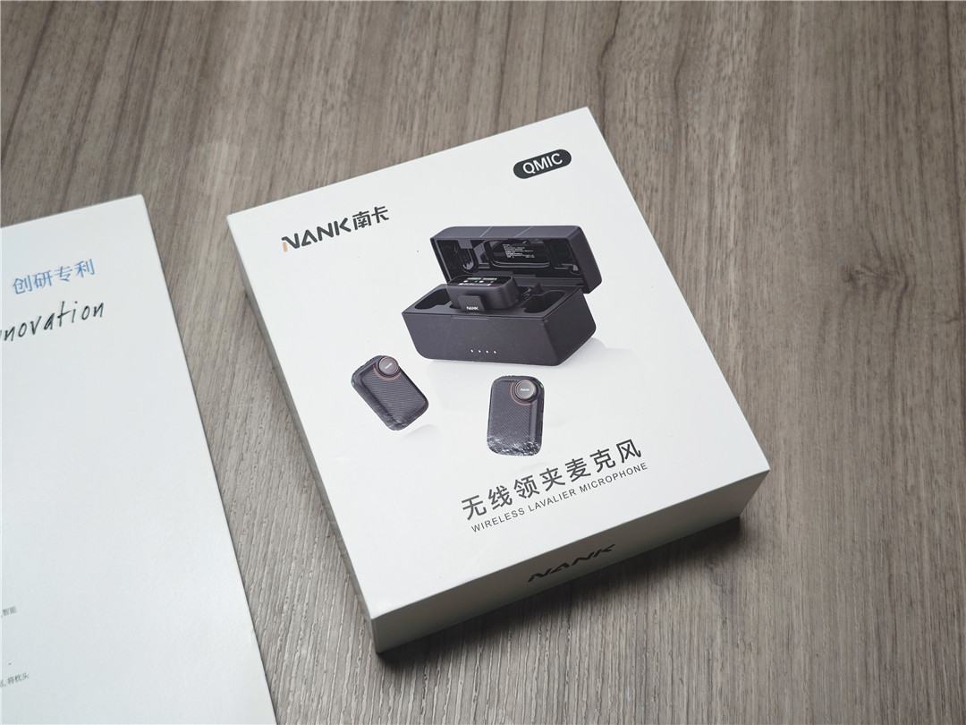 南卡 Qmic 领夹麦克风的外包装简约大方,白色的盒子上印着南卡的品牌标志和产品名称,正面的产品图像,透着一股精致感。