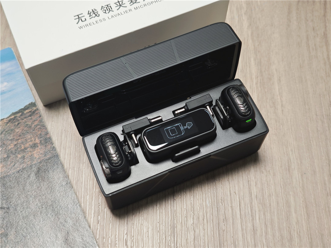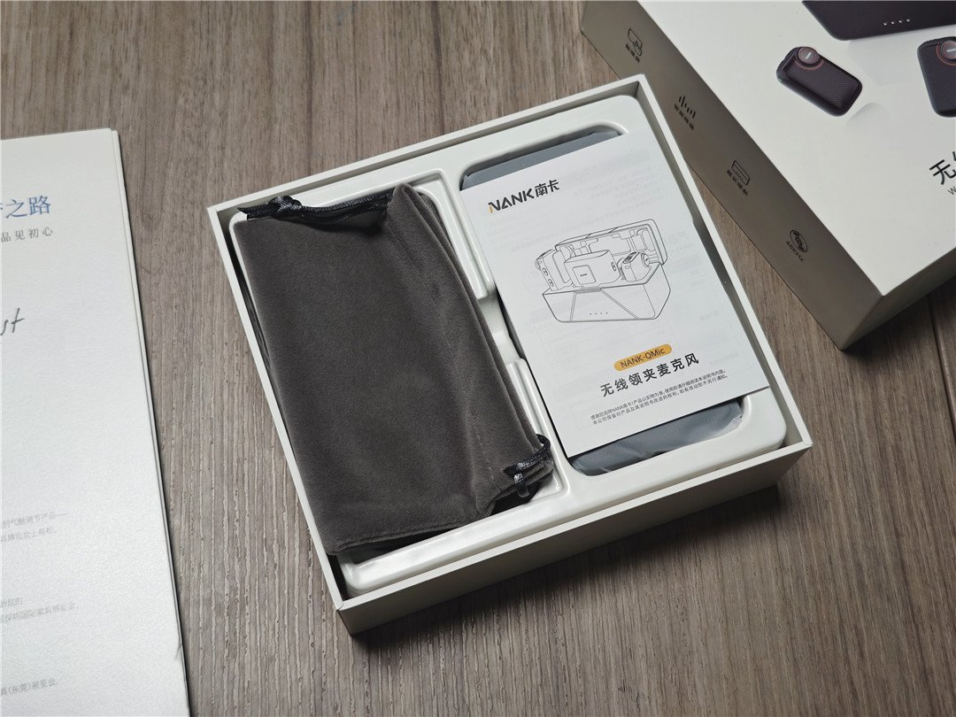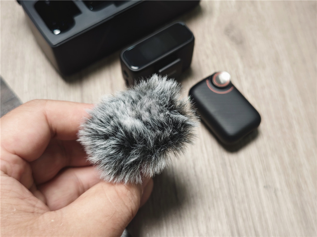 包装盒内部除了麦克风主体,还有接收器、充电线、防风毛套、说明书等配件,一应俱全,看得出品牌的用心。