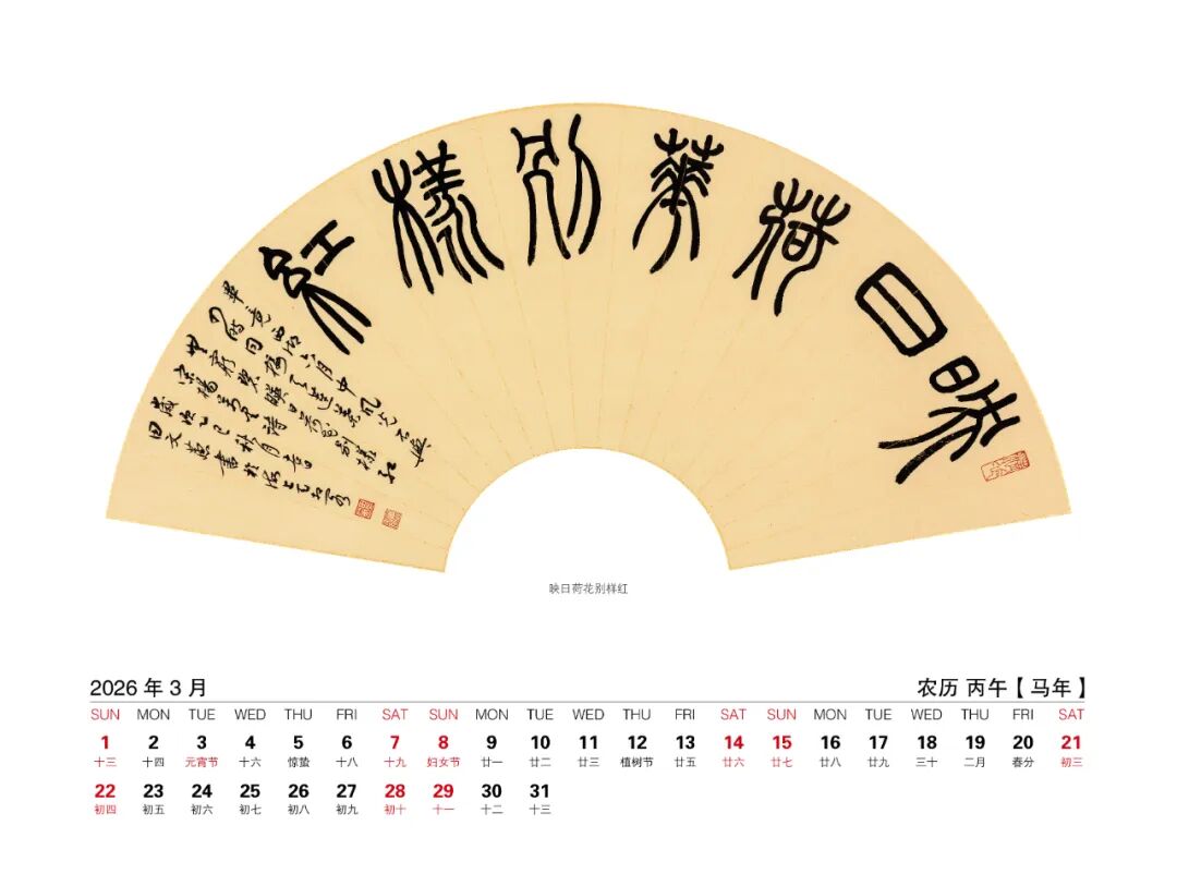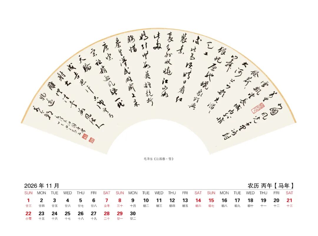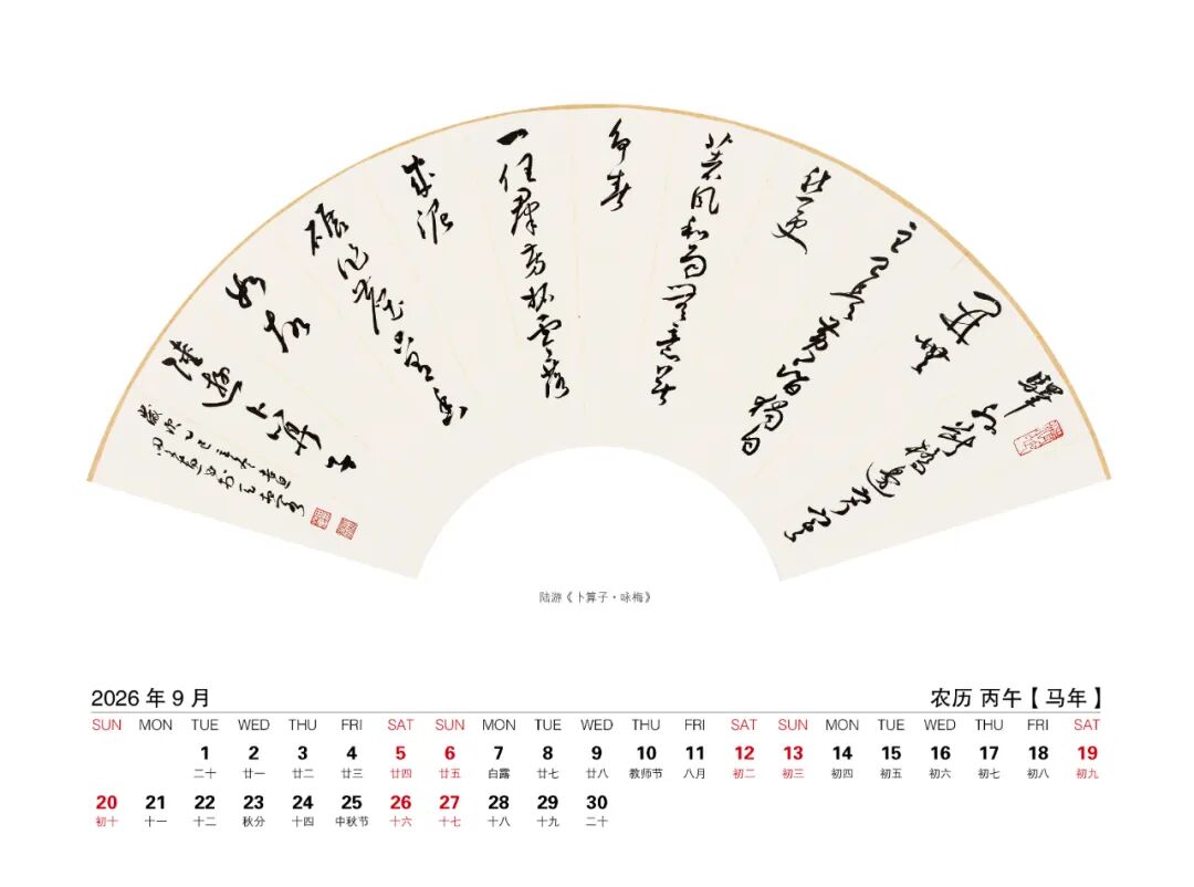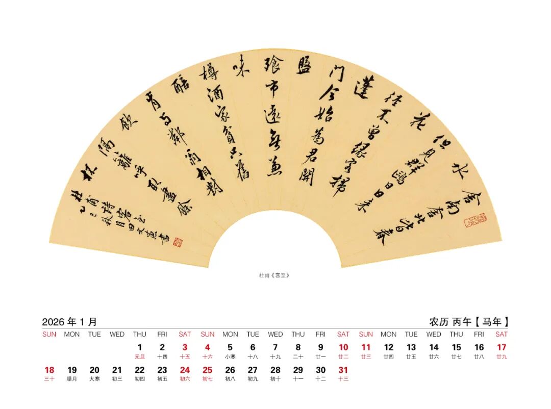中国书法家协会理事,上海市书法家协会副主席——田文惠 2026精品日历