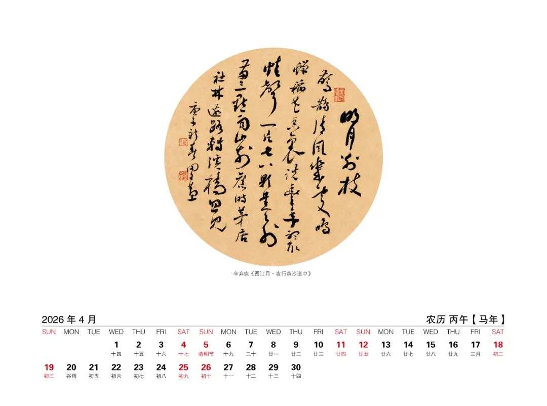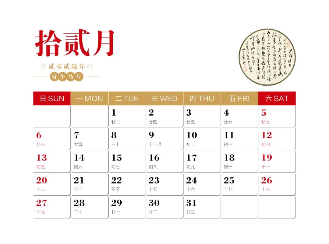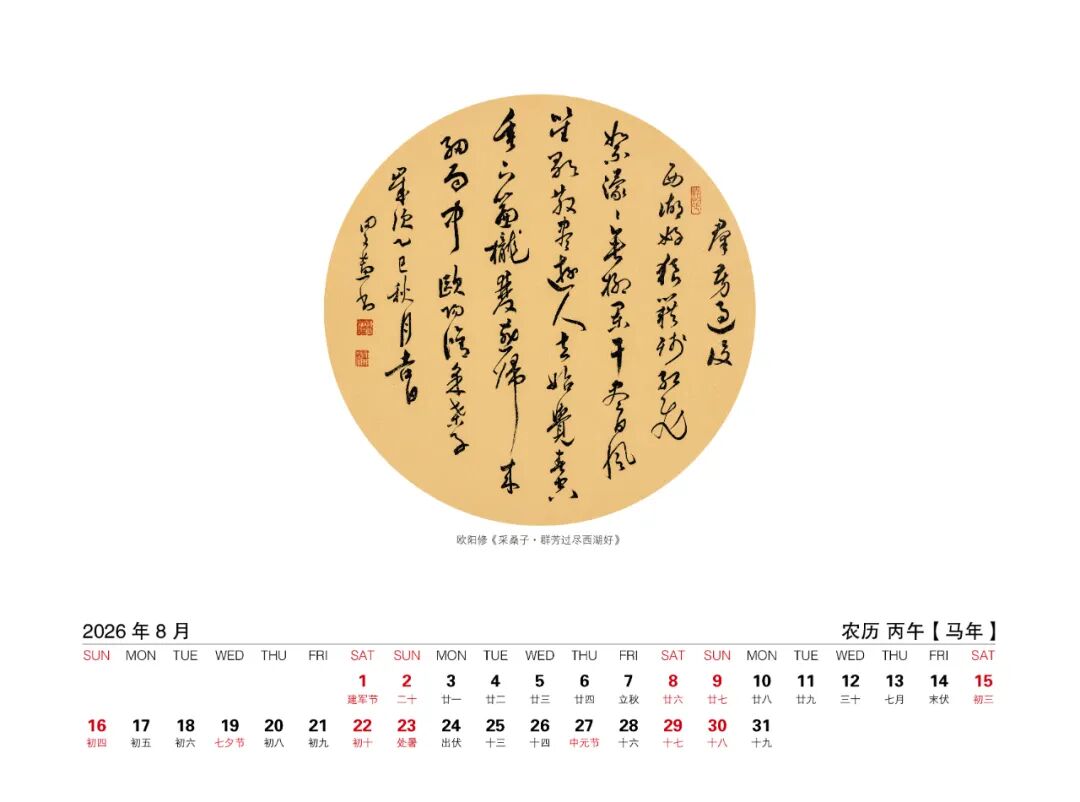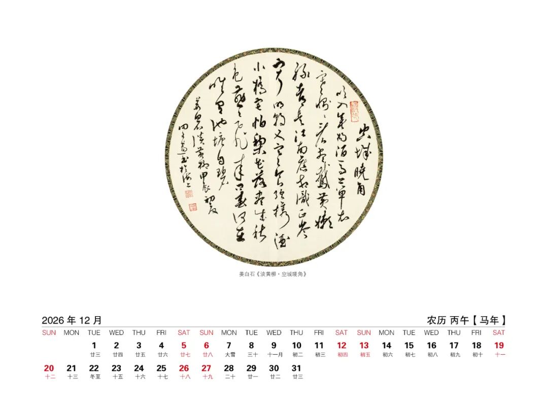 中国书法家协会理事,上海市书法家协会副主席——田文惠 2026精品日历