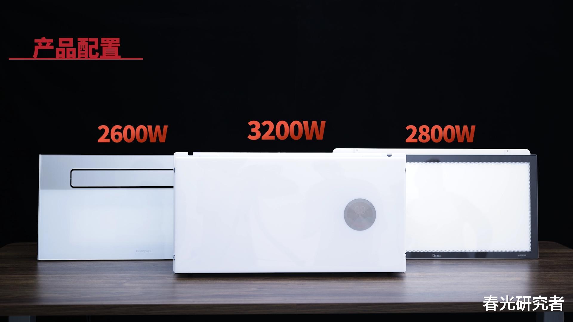 配置方面,霍尼韦尔的取暖功率是2600W,美的是2800W,易来是3200W,这三款浴霸也都是双电机设计,支持取暖和换气同时开启。