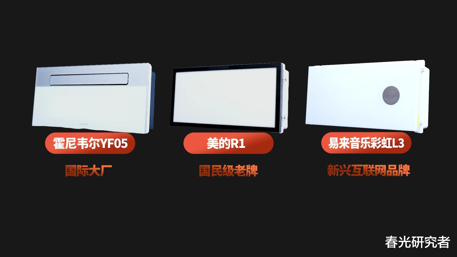 我们这次挑选了三款千元级的浴霸:霍尼韦尔YF05、美的R1、易来音乐彩虹L3,分别代表了国际大厂、国民级老牌、新兴互联网品牌,也在一定程度上代表了三种做产品的理念。