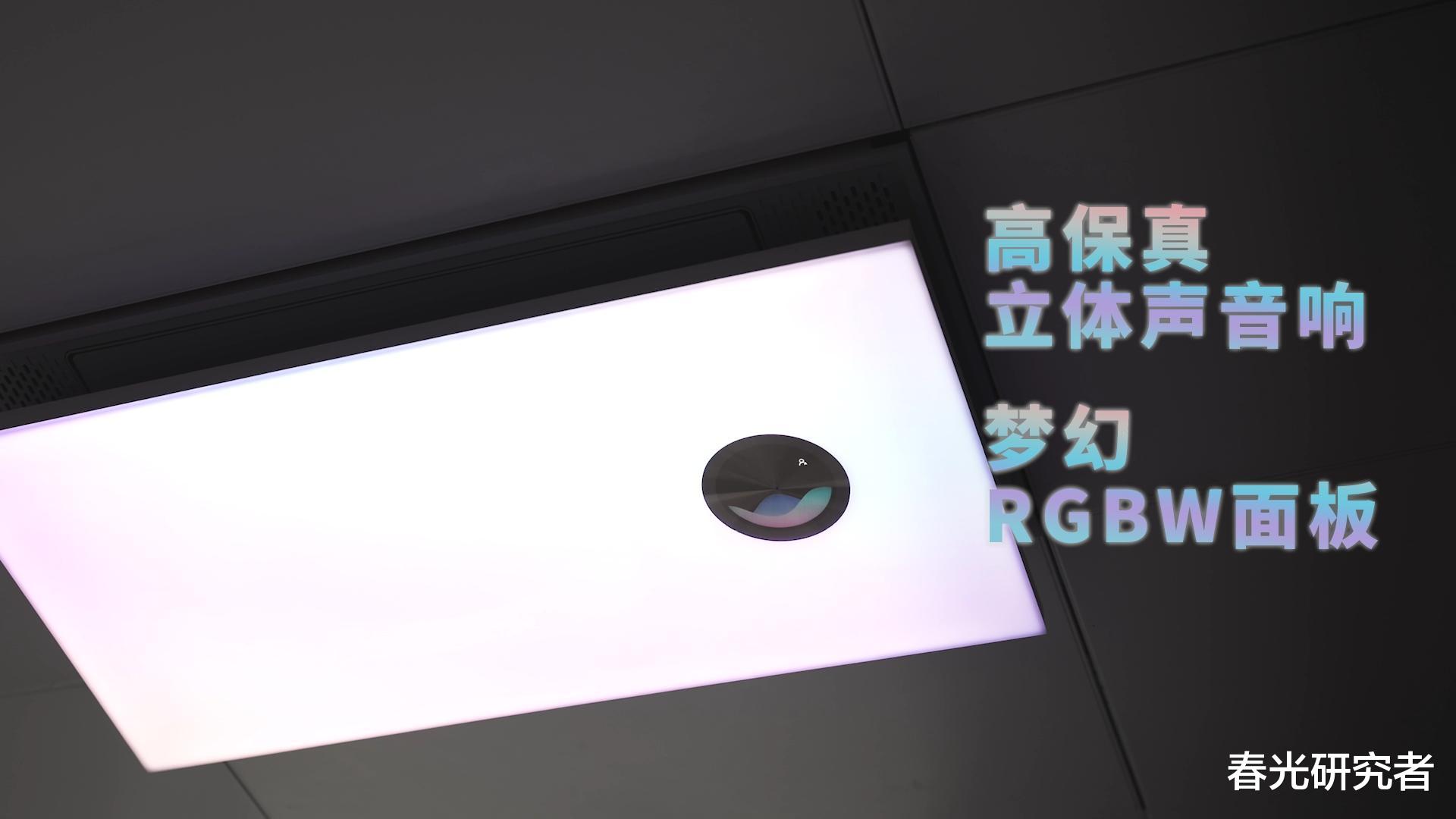 当然这只能算一个小亮点,真正的绝招是它的高保真立体声音响和梦幻RGBW面板,一个浴霸竟然能把浴室变成KTV,你敢信?手机和浴霸配对之后,可以随意播放你想听的内容,洗澡喜欢听歌唱歌、化妆卸妆时想要听音频、甚至是哄小朋友洗澡时放个动画片,这台浴霸它全都会!