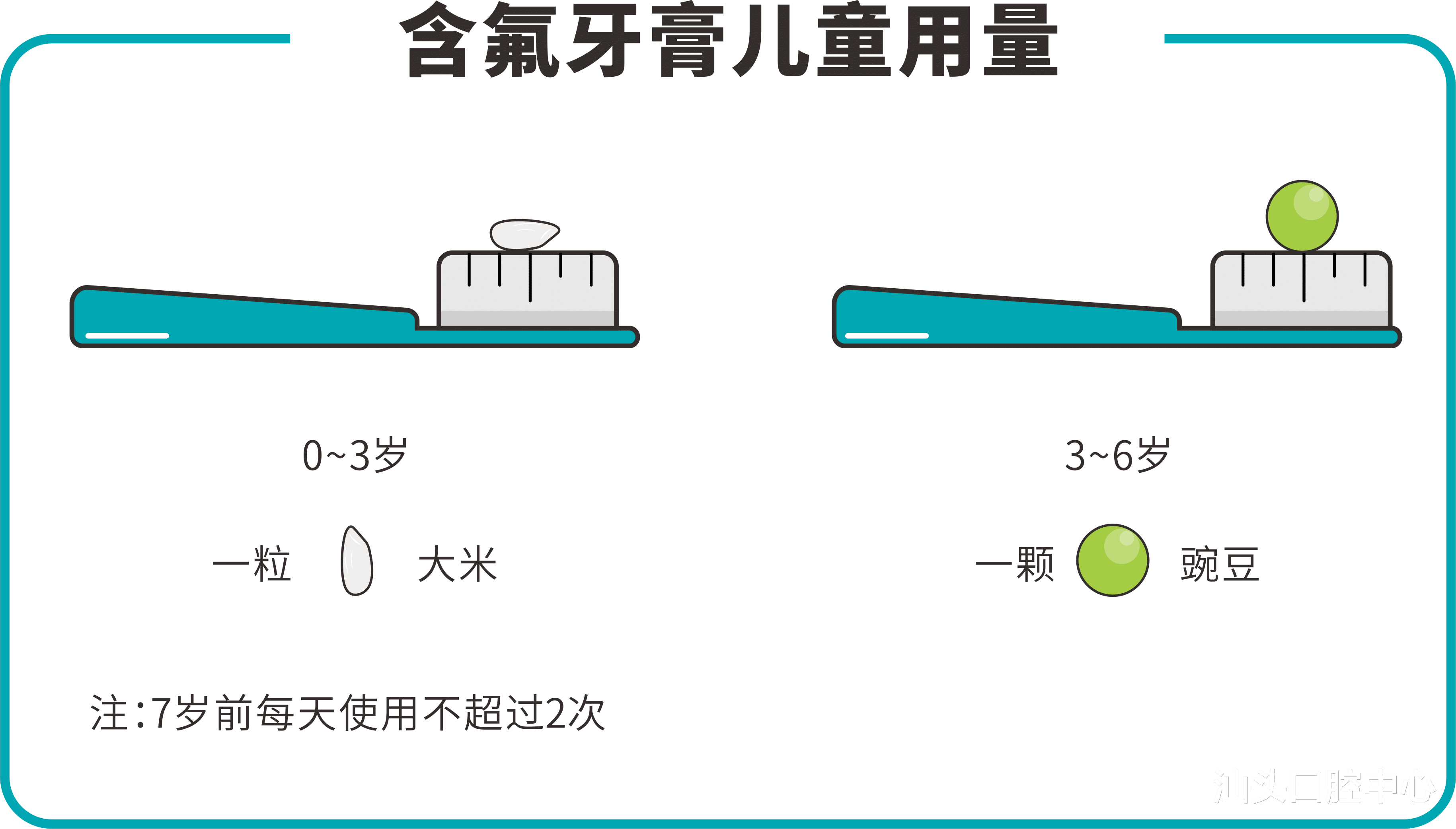 怎么用才对?0-3岁的儿童,每次用米粒大小的量,家长帮着刷,就算咽下去一点也没事。3-6 岁的娃,每次用豌豆大小的量,教他们刷完后吐出来,慢慢养成习惯。