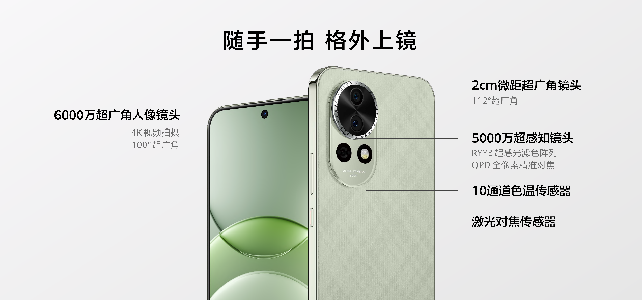 华为nova 13搭载了前置6000万人像追焦双摄,支持业界独家0.7X-5X全焦段人像。全新升级的华为达芬奇人像引擎,带来原生、质感和妆感模式,风格多面,让美貌时刻在线。后置则搭载5000万多焦段人像三摄,新增3X长焦人像防抖镜头,首推质感人像拍摄。