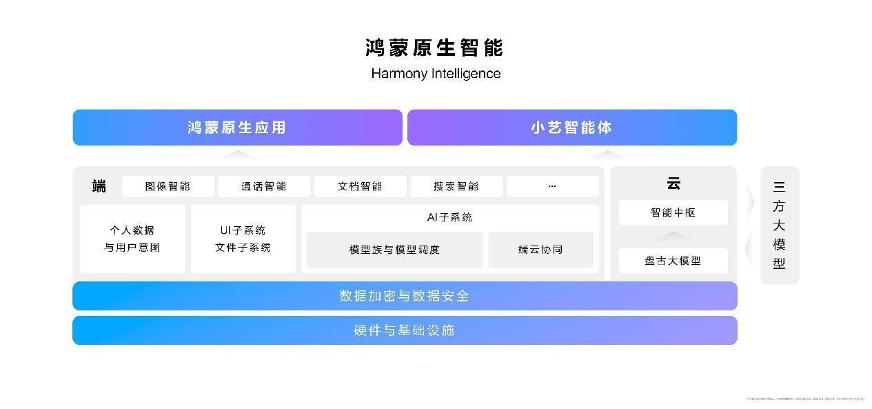 体验提升方面,华为终端BG CEO何刚做了详细的解读,鸿蒙原生智能通过软硬新云的协同,华为首次将原生的AI能力融入系统并开放给生态,完全不同于纯软件一个APP的能力,鸿蒙OS5把 AI的原生能力融到系统中。在盘古大模型加持下,小艺能力全面提升,具备更强的感知、推理能力,可实现23类Top场景记忆感知,任务成功率超过90%,知识量突破万亿。