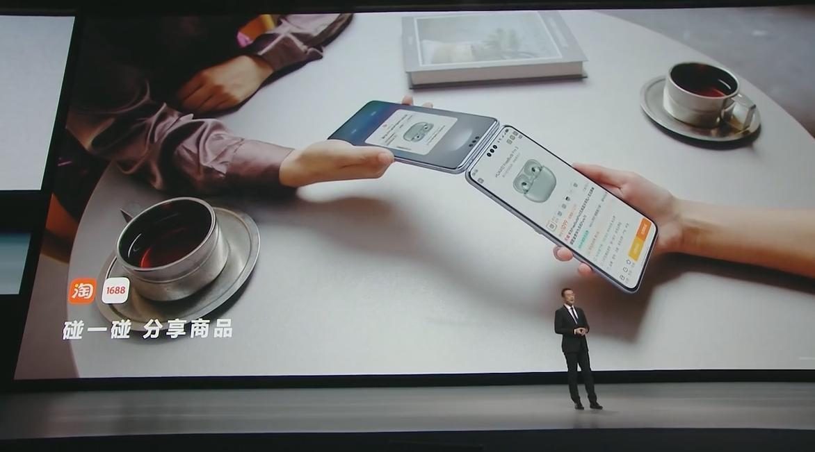 更好的体验就是在多人分享时,无需添加好友,无需建群,可以一次多选同步发给所有的新老朋友。交互方式碰一碰,通过近场感知,两个设备碰一碰就能分享淘宝商品,分享小红书博主,未来还可以做到手机碰平板、碰智慧屏、碰座舱,实现内容和应用的无缝流转。